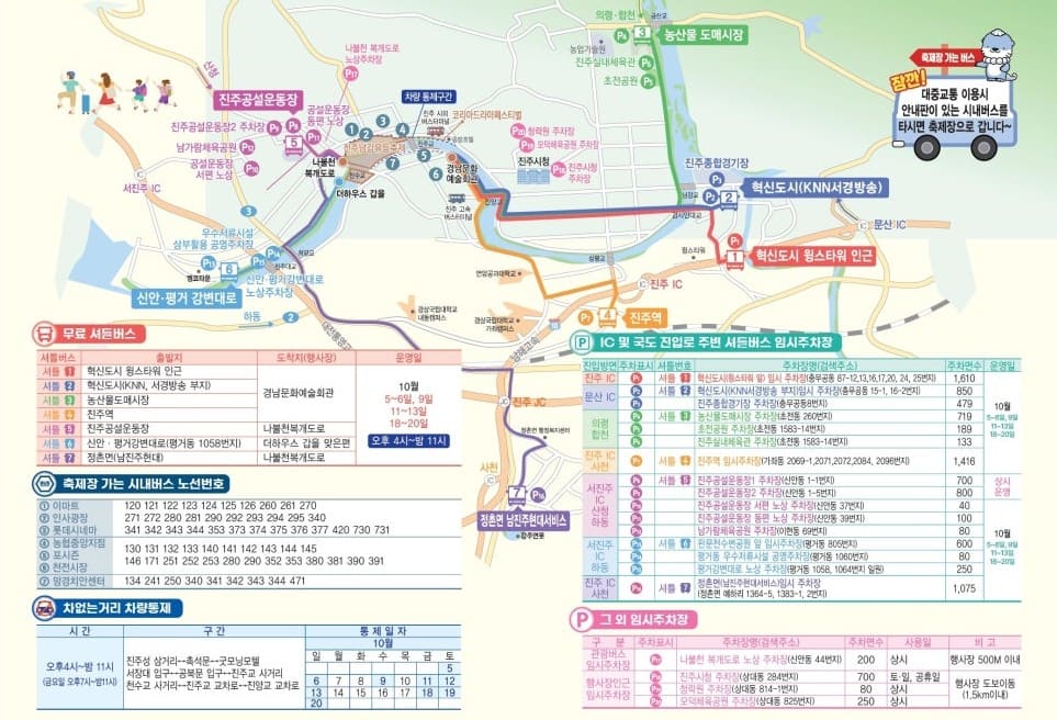 - 주차 : 진주공설운동장,남가람체육공원,청락원주차장,진주시청 주차장 등